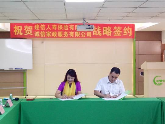 诚信家政与建信人寿签订战略合作签约,让保险业助推家庭服务业发展,提供“家政服务综合保险”一揽子服务,加速推进家政商险全覆盖。通过人性化的保障机制,将增强企业员工的归属感,凝心聚力、促进企业和谐发展。