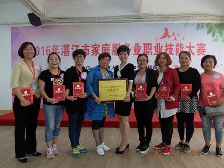 湛江市家庭服务业协会陈迪会长与获奖选手合照