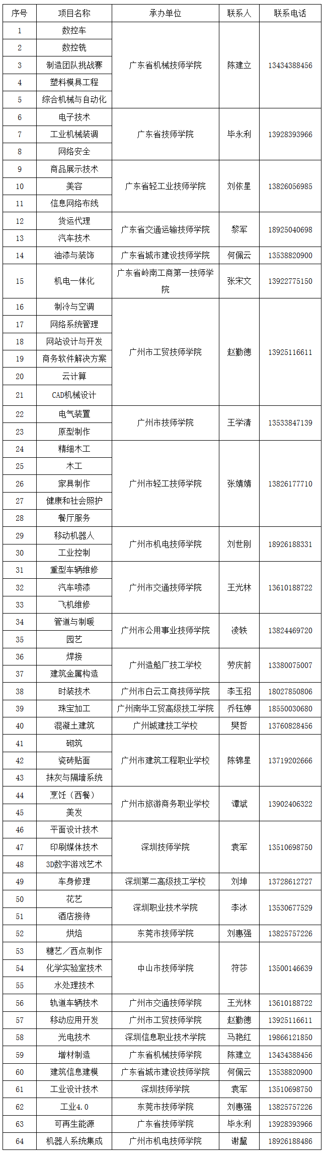 一、第46届世界技能大赛64个项目广东省选拔赛及承办单位
