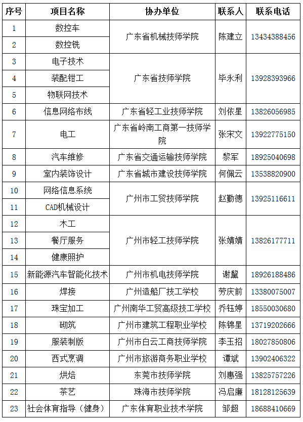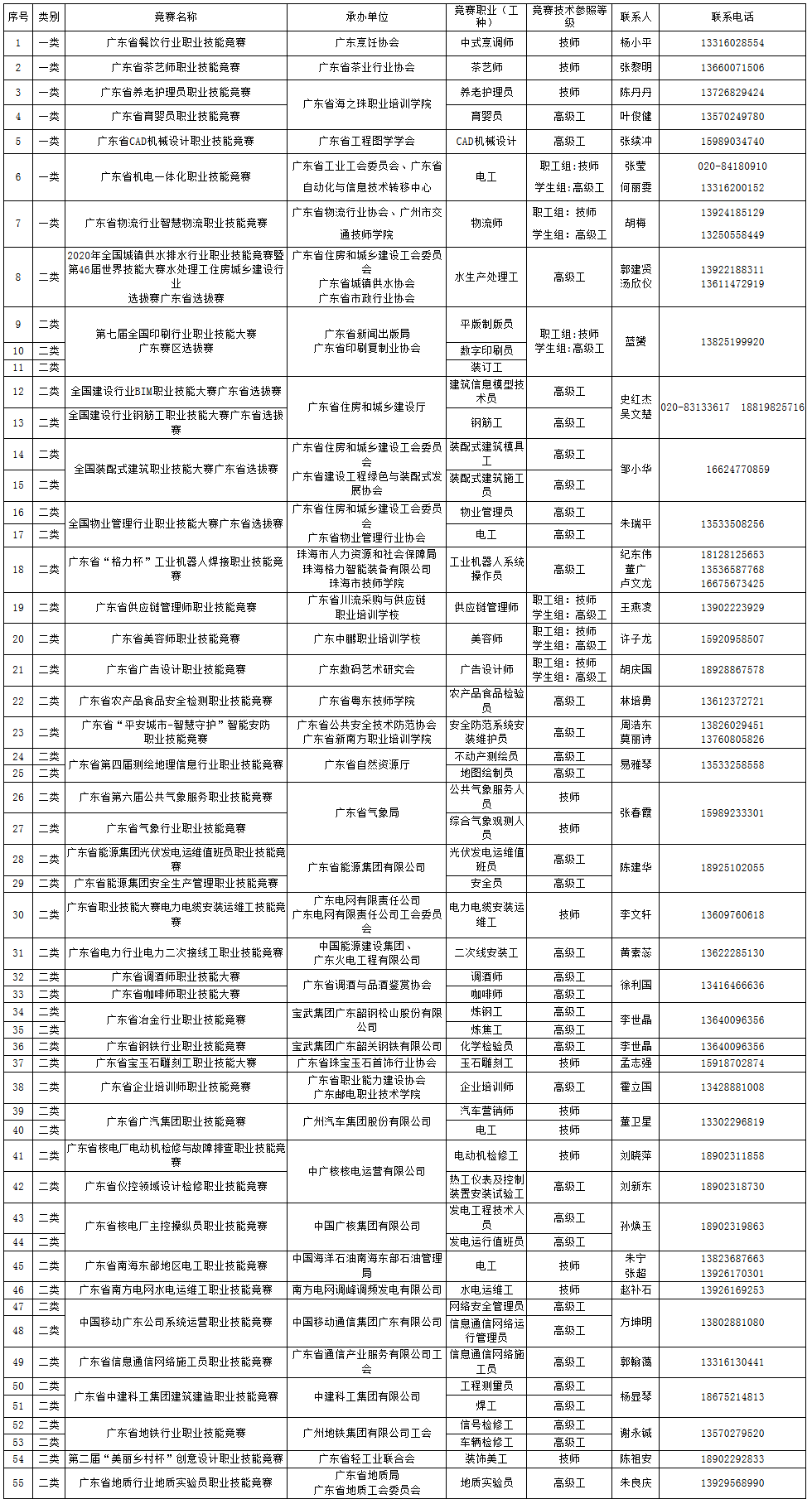 三、广东省行业企业职业技能竞赛55个项目承办单位